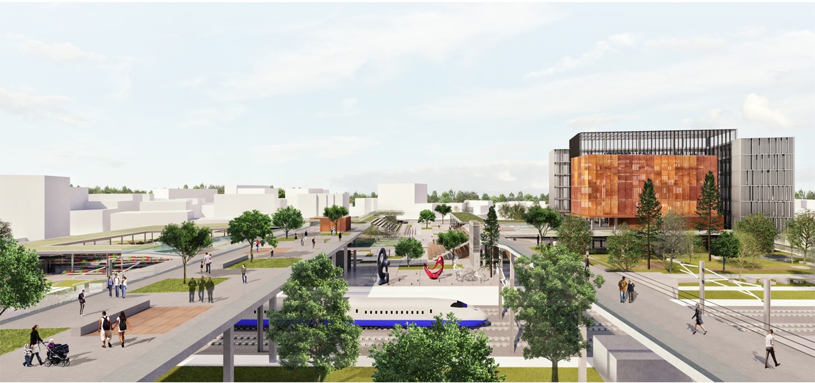 Bu yüzden tren yolunun ikiye böldüğü kenti yine tren yolu ile birleştirmeyi öneriyoruz. Mevcut alt geçidin yanı sıra tren yolu üstünde bir üst teras yaparak kentin iki tarafını birleştirmeyi aynı zamanda bu terastan trenleri izlemeyi, tren geçtikten sonra da tren yolu boşluğuna dalıp şiirsel huzuru değerlendirmek istiyoruz.