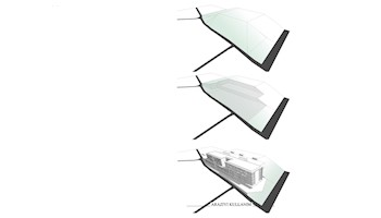 Seyir terası üstünde yükselen yapı, geniş saçaklarla ikiye parçalanmıştır. Batı tarafında bulunan kütle tıp fakültesi, doğu tarafında bulunan kütle ise yüksekokul olarak kullanılacaktır. Kuzey-zemin kattan tıp fakültesi girişi, Güney avlusu-4.kattan yüksekokul girişi sağlanmıştır.